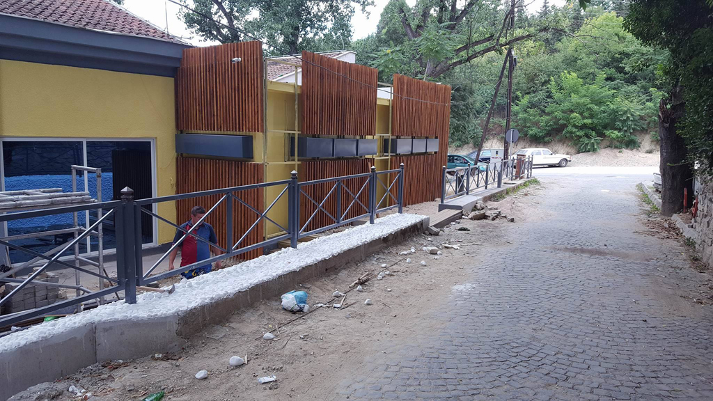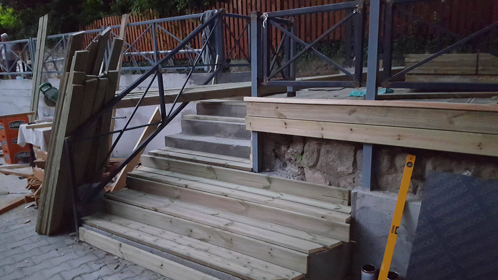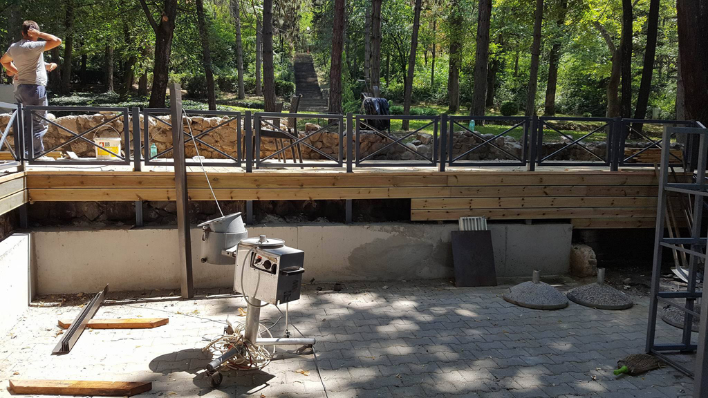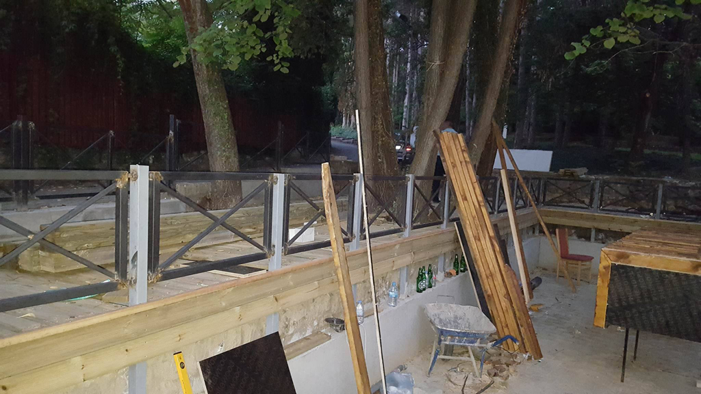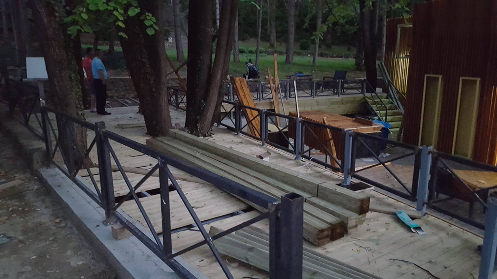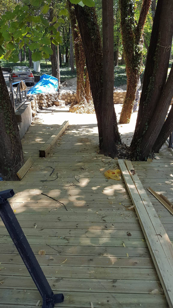 Αναλάβαμε να μετατρέψουμε έναν χώρο από σκουπιδότοπο σε ένα υπέροχο μέρος αναψυχής. Με το ξύλο και το μέταλλο να κυριαρχούν στην διακόσμηση του εξωτερικού χώρου και βραχοσυνθέσεις να δίνουν μια ξεχωριστή πινελιά που έκανε την διαφορά. Επίσης επενδύσαμε το δάπεδο με κυβόλιθους, τις σκάλες με ντεκ και χρησιμοποιήσαμε ακατέργαστες πέτρες για την διακόσμηση των τοίχων.